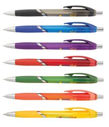 Chrome accents set against the translucent barrel of this plunger-action pen give it a modern look. Its textured rubber grip makes for a comfortable fit in your hand.